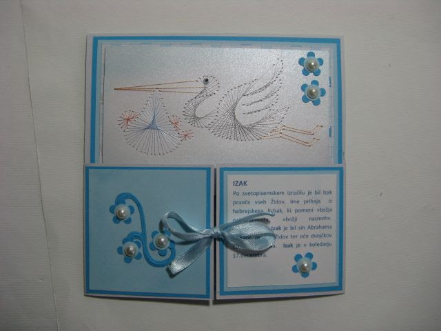 Novopečena mamica pa mi je naročila še voščilnico, ki jo bo dala medicinski sestri - babici. Naredila sem dve in izbrala je drugo. Odtisek sem našla tu.
